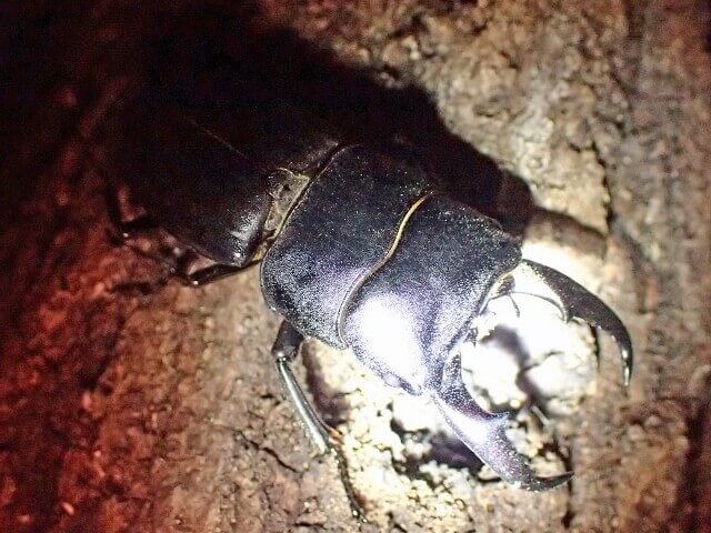 この時間帯になると樹木上を闊歩する黒系クワガタ達も更に多くなって来ました。