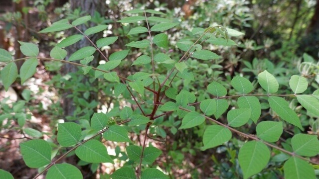 触ると皮膚がかぶれたりしてしまう葉、ウルシです。