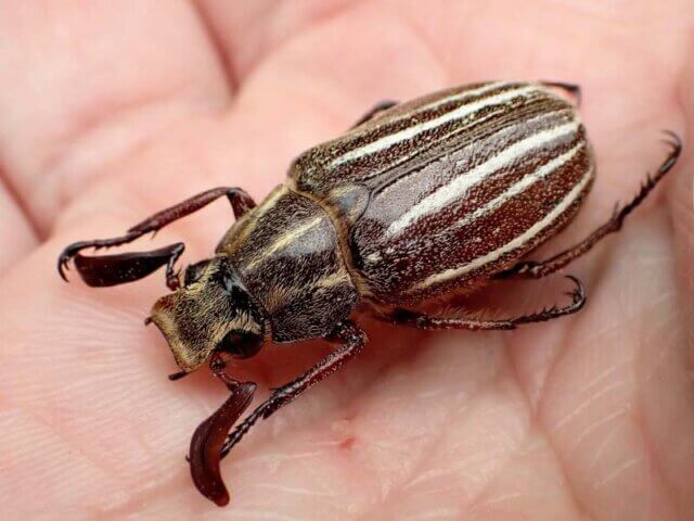 海岸線の松の木の根元幹で見つけたシロスジコガネ