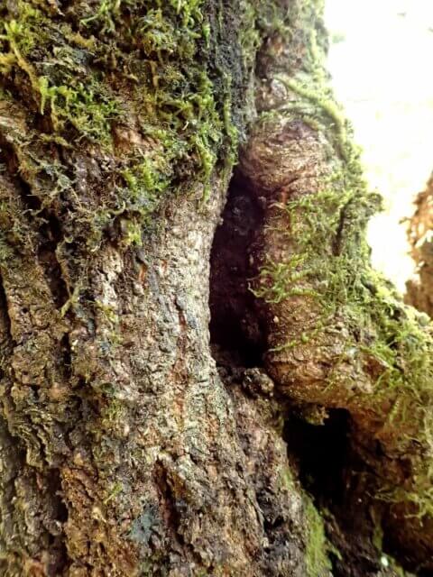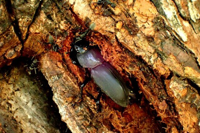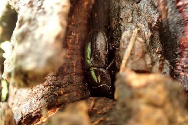 こちらのハルニレ木の隙間にはコクワガタ♀の姿がありました。