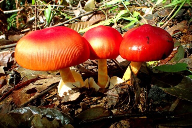 真っ赤な色合いで、見るからに毒々しいですが、実は立派な食用キノコ。