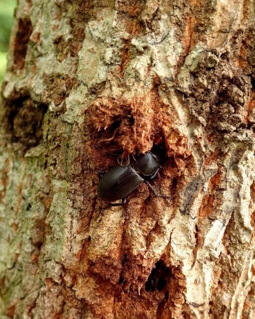 こちらのハルニレの樹皮裏にはヒラタクワガタの♂♀ペアがいました。