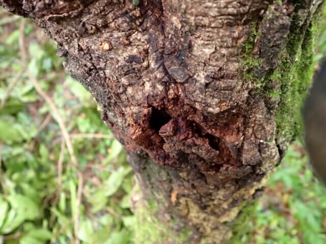 背中に大きな穴、クワガタにやられたのでしょうか?