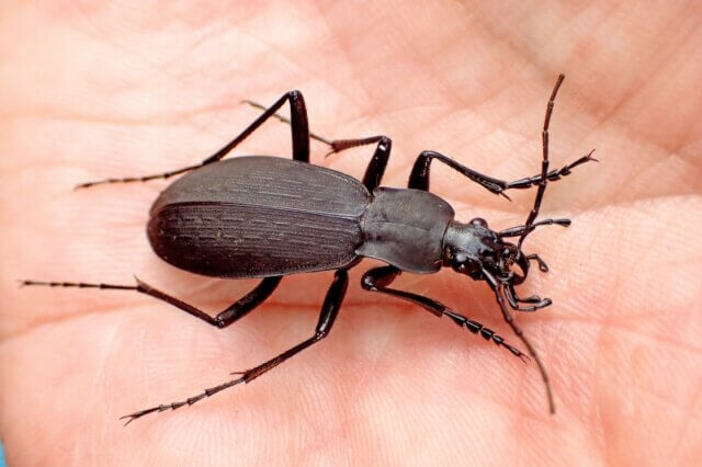 地面を徘徊していたキュウシュウクロナガオサムシ