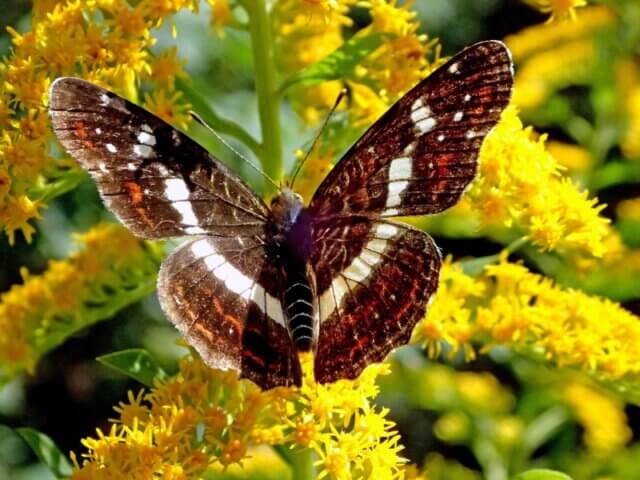 秋に咲くセイタカアワダチソウに来ていたのはサカハチチョウ(夏型)