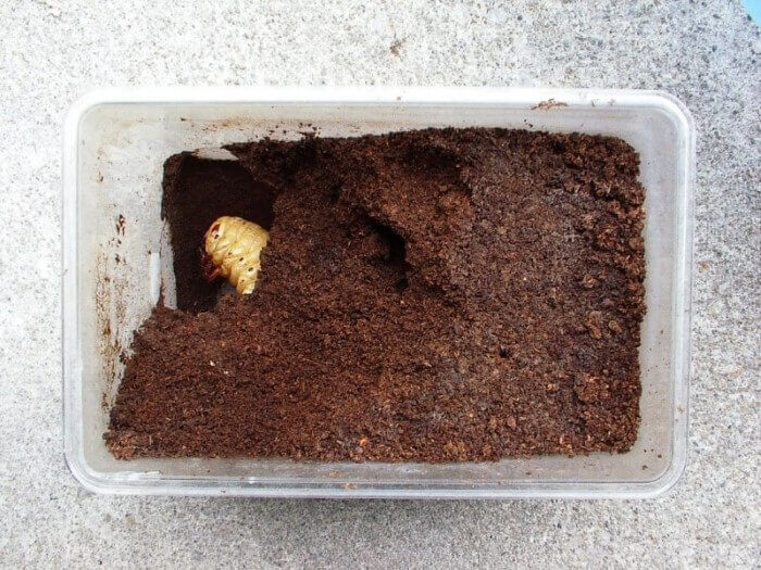 幼虫期間の長いヘラクレスオオカブト、管理温度によっては2年近く時間がかかる場合もあります。