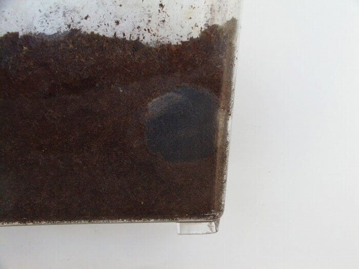 小ケースや中ケースで蛹室を作った場合、ほとんどがケース底に作りますので蛹室の形がケース底から見えます。