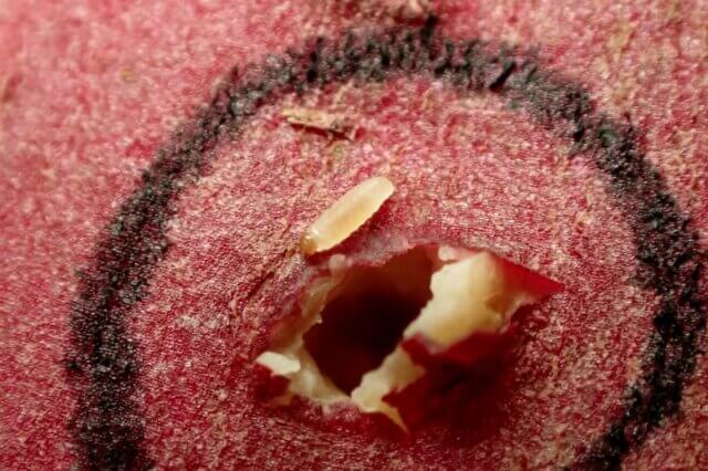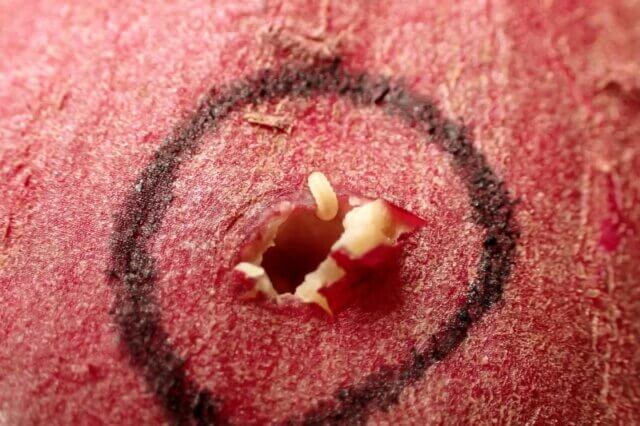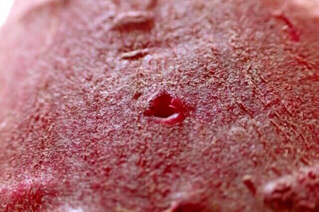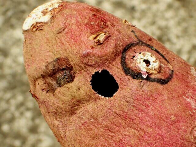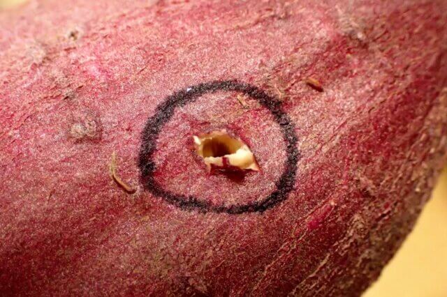 サツマイモに小さな穴がぽっかりと開いていました!