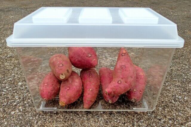 管理中、サツマイモから芽が生えて来るので、途中途中でチェックしながら芽が生えた場合は除去しました。