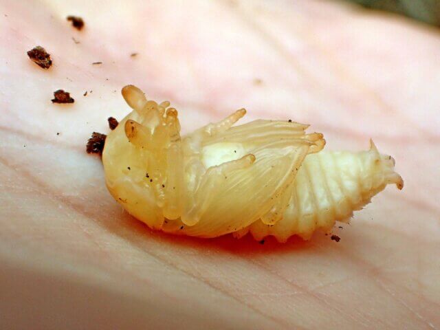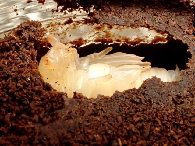 飼育中のルイスツノヒョウタンクワガタ幼虫の一部個体が蛹化。