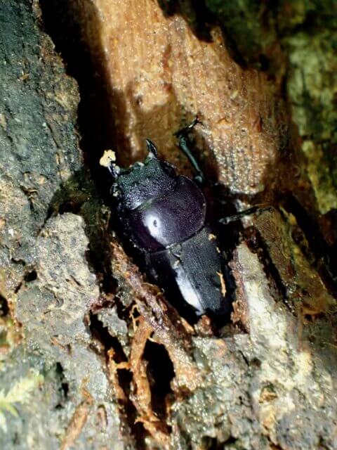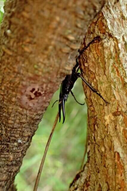 この周辺には、枝上や、木々の隙間、樹皮裏に沢山のコクワガタの姿を見つけました。