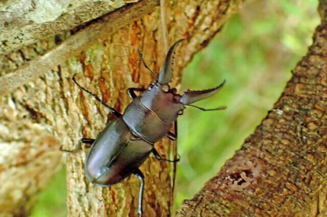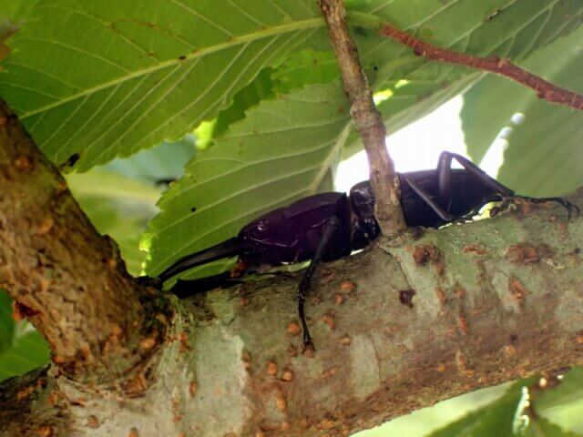 ハルニレの枝の上に潜むコクワガタ♂を発見!