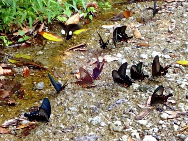 この日林道を進むと、道端に沢山のアゲハチョウ達が集まっていました。