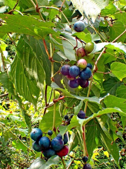 こちらにはノブドウの実が紫色に色づいて実っていました。