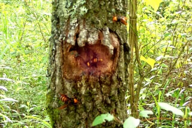 こちらのクヌギの木には複数のオオスズメバチが集まっていました!