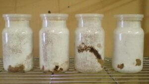 「途中カワラ菌糸:N-1100に変更したのは、カワラが余ってたので使えるかどうか試してみました。割り出し途中で思わず声が出ました!!Σ(゚Д゚)」