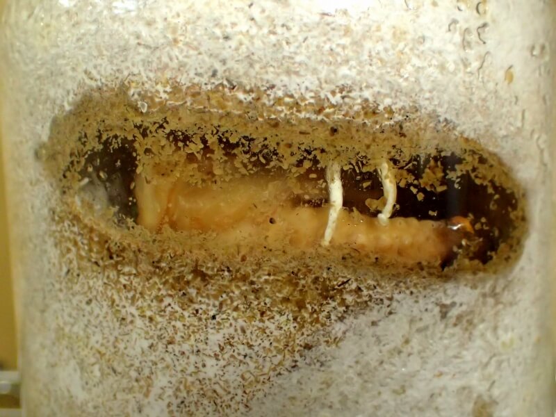 幼虫飼育をしている際、蛹になった時に「蛹室内にキノコが生えて来た」ってことってありませんか?