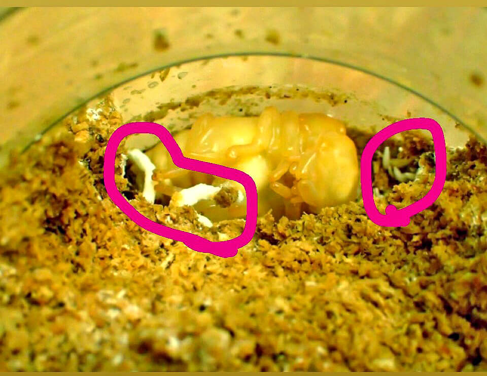 今回は、ちょうど今飼育しているスマトラヒラタの♀の蛹室内の状態がまさにその状況でしたので、その対処方法についてご紹介してみたいと思います。