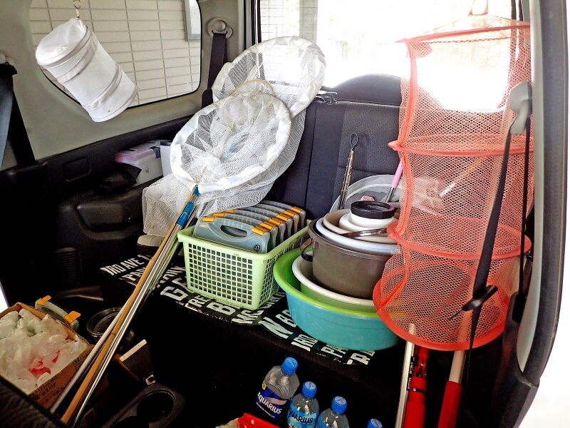 既に数度は出撃しているので、今更なのですが、今後本格的に採集するために、改めて採集道具と車内を整頓準備しました!