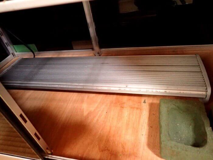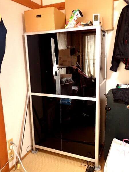 本来ガラスは透明ですが、黒いフィルムを貼って、中のクワカブに刺激を与えないようにしています。