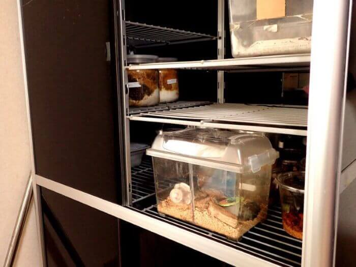 現在は幼虫飼育と成虫管理の為、少し低めの20℃前後で管理。