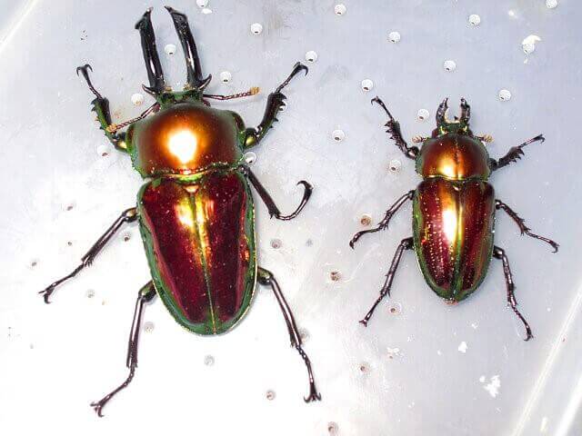 ・ペレン産メタリフェルホソアカクワガタ成虫(♂1、♀1)幼虫約10頭(産卵セット中)