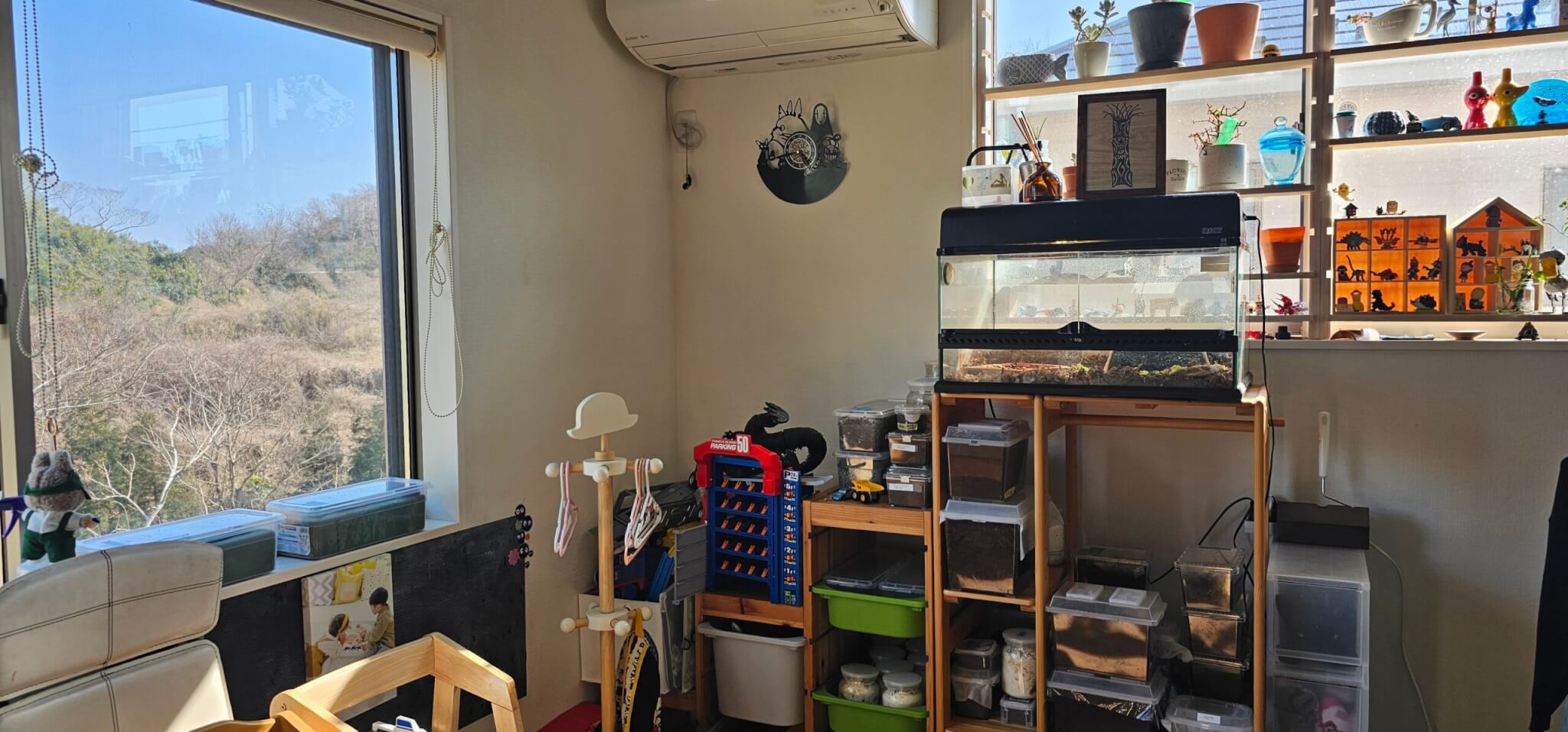 種によっては温度管理が細かく必要な生体は保管場所を変えています。⁡