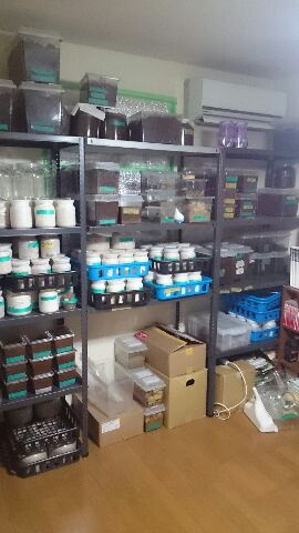 クワガタ類はアンタエウスや、スマトラヒラタ、パラワン、ケースケギラファなどの巨大な種類を始め、ホペイや国産オオクワ、ヒラタなどもなん産地か飼育してます。