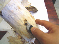 樹皮をナタや切り出しナイフなどを使い剥ぎ取ります。