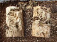 産卵木を3分の2ぐらいまで発酵マットで埋めます。側面の部分も硬く詰めます。