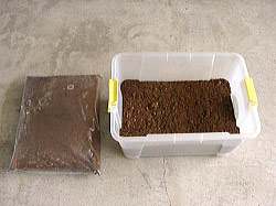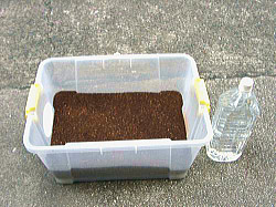 ガス抜き&加水をした発酵マットをケース底から約5cm硬く詰めます。