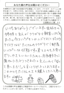 発注から受け取りまでが1日これは早い!!ありがとうございます!!いままで月夜野さんは、小売り店向けの会社だと思っていました。思い切ってTELして良かった。これからは、月夜野さんで飼育ガンバリます。次回は、12月頃に予定してます。その時は宜しくお願いします。