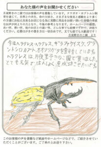 月夜野クワカブ広場のサービススタート、おめでとうございます。ネット販売やオークションの不安などある中、信頼あるメーカーさんが初心者さんをバックアップする素晴らしいWebサービスだと思います。これからも独走を続けて下さい。