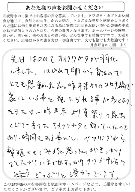 先日はじめてオオクワガタが羽化しました。はじめて卵から育てたのでとても感動しました。…いまではすっかりクワガタ沼にどっぷりと浸かっています。