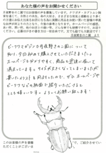 今回ギラファとオオクワ・国産ノコの菌糸ビンの交換として、1100と1400のヒラタケ菌のを購入しました。ギラファは食い付きがよく食痕が早くも表れています。また交換時にリピートしたいです。1400が一番大きいようですが、それ以上の大きさの菌糸ビンもあると助かります。