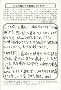 いつもお世話になります。きのこマットはオオクワの材を埋め込み産卵セットと、国産カブトの幼虫用に使っています。オオクワの産卵数、またカブトの幼虫の大型化に効果あり、とても気に入ってます。50L、1,980円の安さで結果もきちんと出るので今後も利用させて頂きたいと思います。ありがとうございます。