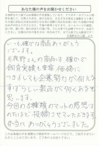 月夜野さんが苦労して作られた良いマットの成果でしょう。これからも、頑張ってください。今後もよろしくお願いします。