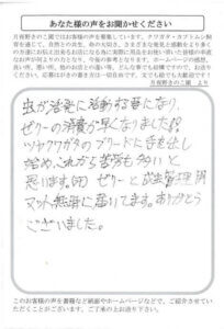 お世話になっております。子供の頃に夏カブトムシを飼育していたことなら何回かあるのですが、繁殖・幼虫飼育は未経験に等しい状態だったので、一度やってみようと思いペットショップでパリーフタマタクワガタのペアを購入し、繁殖させました。菌糸瓶を探していた折に、月夜野きのこ園様の商品に辿り着き利用を始めました。月夜野きのこ園様の菌糸瓶は最初から幼虫が潜るための穴があいていて使い勝手もよく、中の幼虫も中身をよく食べているようで、とてもお世話になっております。カブクワに関して大変な初心者であるため、同封されているマガジンも興味深く、楽しませて頂いてます。今後も利用させて頂こうと思っておりますので、どうぞよろしくお願いします。