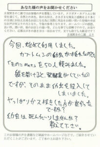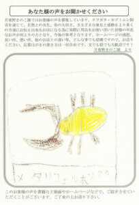 きのこマットで羽化しました。予算の関係でなかなか購入の方が出来ませんが毎週のメールを楽しみにしています。これからも充実した内容のHP、メールをよろしくおねがいします。