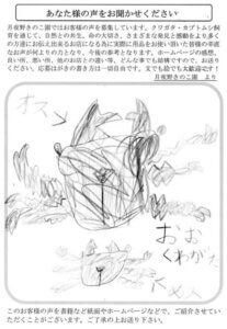 ありがとうございます。カブトムシのようちゅうがすごく大きくなりました。これからもたいせつにつかいます。うれしかったです。
