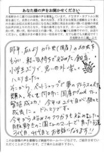 月夜野きのこ園様のいつも丁寧な発送に大変感激しています。これから夏という事でクワカブシーズンに入るので採取の方にも力を入れてきたいと思います。またKUWATAフェスなどにも月夜野さんもでていただけると大変盛り上がると思います。これからもよろしくお願いします。