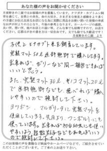 質の良いマット・菌糸がコスパ良く手に入れることができ大満足です!以前きのこマットを購入しましたが、国産だけではなくヘラクレス系にも使用しても何も問題なく順調に成長してくれています。次の段階として、完熟マットも使ってみたいと思っています。今回は菌糸を購入したので、我が家の虫たちの成長が非常に楽しみです。これからもお世話になると思いますが、よろしくお願いします。