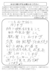今年初めてカブトムシの幼虫を購入しました!でも全然幼虫のことについては知らないので、ネットで調べたところ、月夜野きのこ園様のホームページにたどりつきました。すごく助かりました。あの時はお世話になりました!!