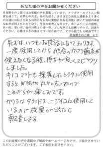 今までマット飼育で国産(自己採集)種を飼育してきました。ヒラタ・ミヤマ・ノコ・アカアシ・ヒメオオ・ツヤハダ・オニ・コルリなど…仕事で知り合った仲間からタランドゥスペアとニジイロペアを頂いたので外国産飼育にも昨年からハマりました。カワラ…すぐに傷むし入手しづらいと思っていましたが、貴園の菌糸の持ちの良さにビックリしています。本当はブロックで買う方が経済的なのでしょうがカワラの臭いが家族から不詳なので、ボトル購入しています。スペースの都合もあるので出来れば800ccのカワラもあると助かります。