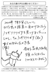 1頭メスは5/4(月)羽化!!タイミング早く、びっくりです。日本最高記録ではないでしょうか。5/14(木)エサ投入。しかし食べない?とても元気で動き回っていました。とにかく動き回っていることが印象的でした。産卵させる予定でしたが、6/2(火)動かなくなってしまいました。約1か月間。オスとペアにすることもできませんでした。