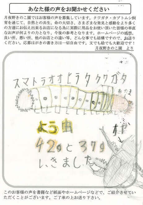 スマトラオオヒラタクワガタよう虫42gと37gいきました。