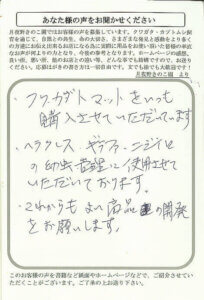 貴社ますますのご発展お喜び申し上げます。本年6月5日に貴社より「オオクワガタ幼虫2,3令+菌糸ビンE-800セット698円」を2セット購入いたしましたが非常に丁寧に梱包されて送付されてきました。