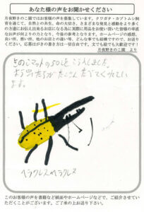いつも品質が良く、感謝しております。今年一年ありがとうございました!4才の息子とともにクワ・カブの飼育を頑張っています。Youtubeも楽しみにしております!