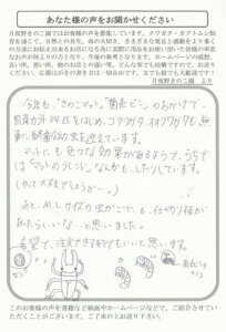 それと、質問サイトのヤフー知恵袋はご存じですか?知恵袋内では月夜野さんの話題もたくさん飛びかっていて、自分も悪い事か良い事かはおいといて質問で良いマットを教えて下さいと言う質問に対して月夜野さんのマットを個人的にすすめてしまっています。理由は使っていて、とても良いからです。今後もよろしくおねがいします。