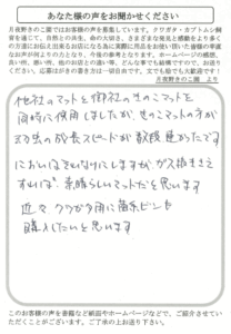 以前よりYouTube等で月夜野さんのことは知っていました。オオクワガタを育ててみたかったのですが、まったくの初心者だったので動画やホームページを拝見して学びました。動画やホームページは初めてで分かりやすくやってみようと思うようになり、今回は幼虫3頭+菌糸ビンを購入させて頂きました。これからも分からないこと等は動画・ホームページを見ながら大切に育てていきたいと思います。今回はありがとうございました。